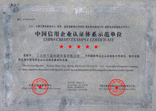 中國(guó)信用企業(yè)認(rèn)證體系示范單位